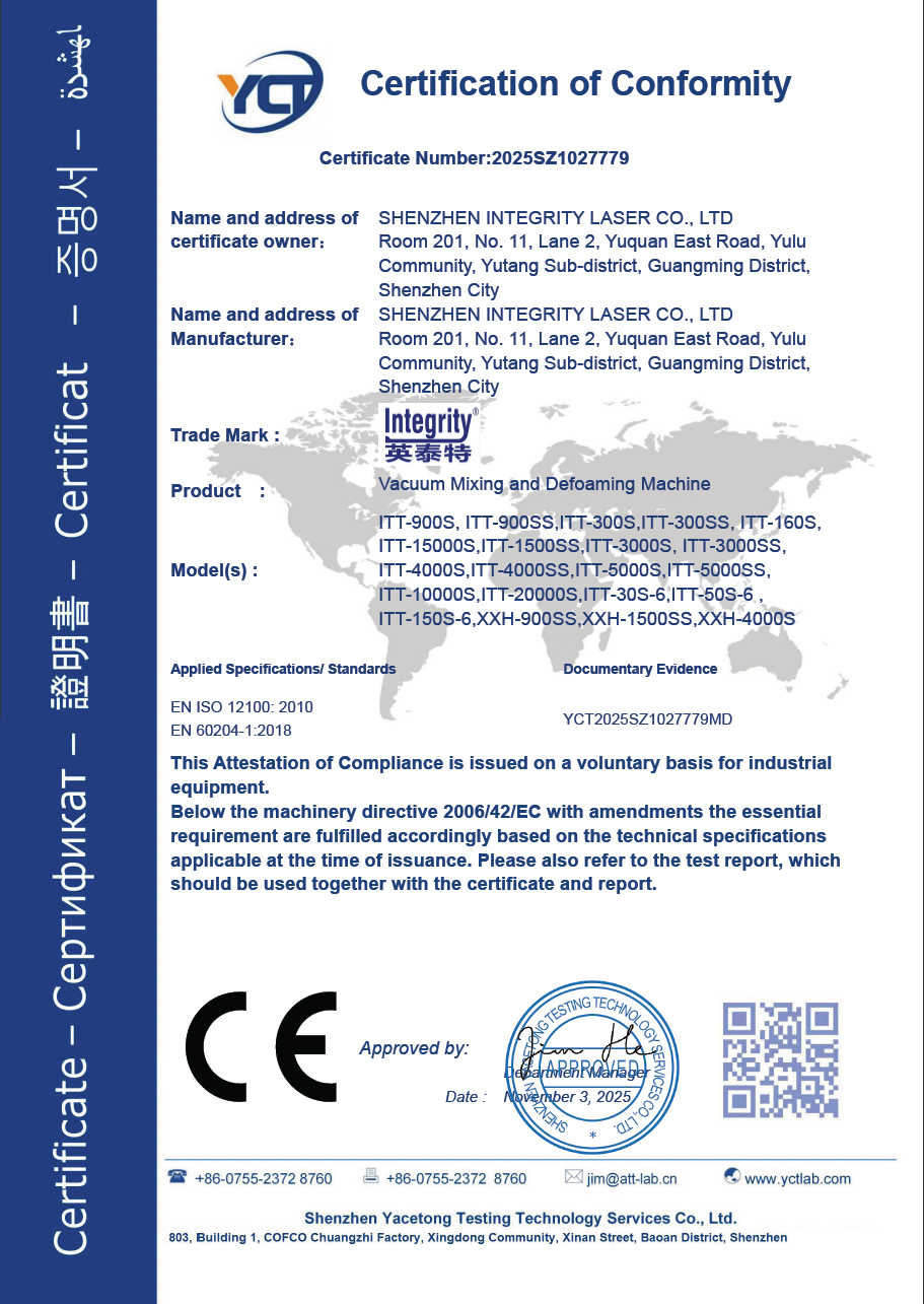 Shenzhen integrity Laser Co., Ltd. Is a company with strong R & D strength of the company, is China's leading planetary mixing, bubble machine manufacturer.We focus on customer needs continuous innovation and R & D in LED optoelectronics, silver,nano-powder materials, ceramic powder, high viscosity coatings, high, sharp,Mixed refined products in the field of….